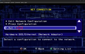 Agora vá no menu principal em “Network Play > NET CONNECTION”. Em baixo de “Proxy Configuration” vai estar as configurações salvas que você fez anteriormente, selecione ele com o bolinha e pronto.