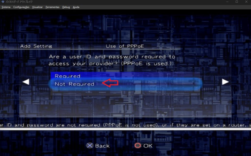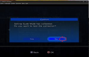 Em Hardware Settings selecione o Network Adaptor e vá para o lado direito. Em Use of PPPoE selecione “Not Required”. Em IP Address Setup selecione “Auto”. Em DNS Server Address Setup selecione “Auto”. Escolha um nome qualquer para a configuração que você acabou de fazer e mova pro lado direito depois disso. Aperte “OK” para salvar a configuração. Vai aparecer uma janela azul perguntando se você deseja testar a conexão, selecione em “No”.
