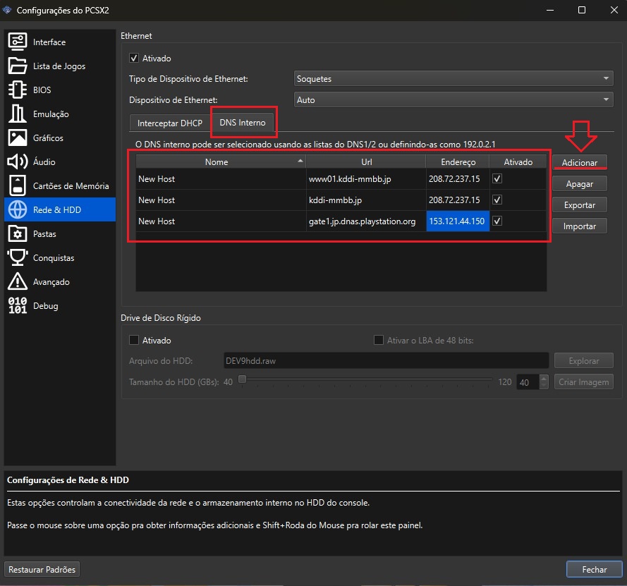 New Host | gate1.jp.dnas.playstation.org | 153.121.44.150 | Marque a caixinha