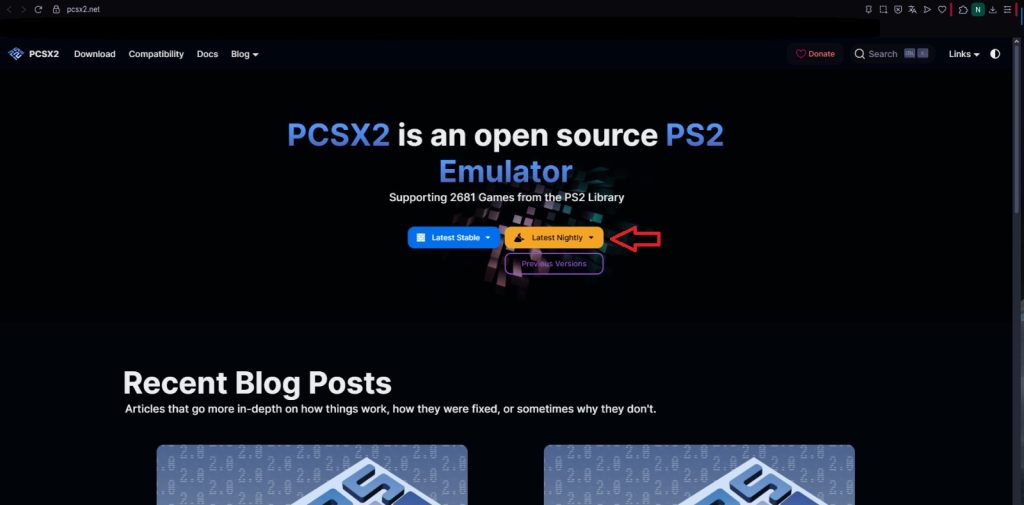 Baixe o emulador PCSX2 por aqui [https://pcsx2.net/]. Recomendamos que escolha a versão Nightly.