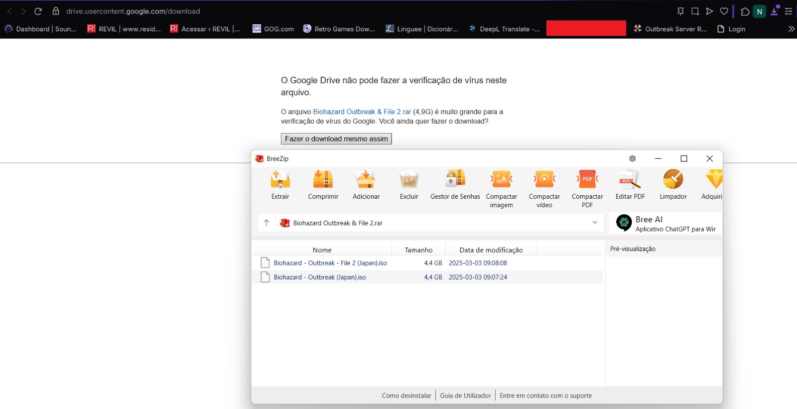 Baixe os dois jogos por aqui [https://drive.google.com/file/d/121KSbOQul6elkTVXRvV0dNkPmmz89ihJ/view?usp=sharing], ambos na versão Biohazard com patch de tradução inglês.