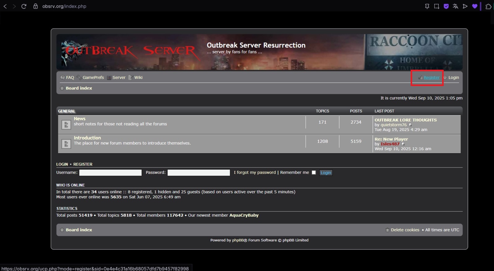 Crie uma conta no site [https://obsrv.org/index.php] caso não tenha, pois será necessário ter uma conta para acessar o modo online dentro do jogo.