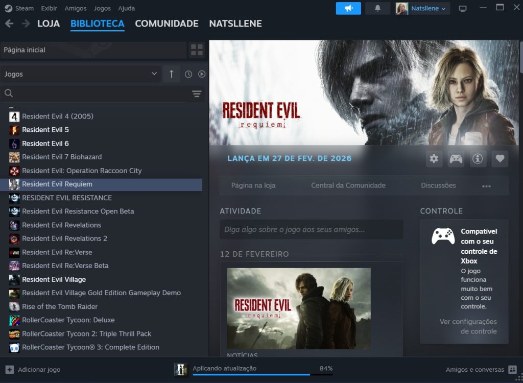Após a ativação da chave no Steam, Resident Evil Requiem passa a ser um jogo listado na biblioteca da plataforma. O download automático da reserva digital é estimado para acontecer a partir de dois dias antes do lançamento levando em consideração informações do PlayStation (pre-load). O acesso ao jogo vai estar liberado globalmente somente no dia 27 de fevereiro.