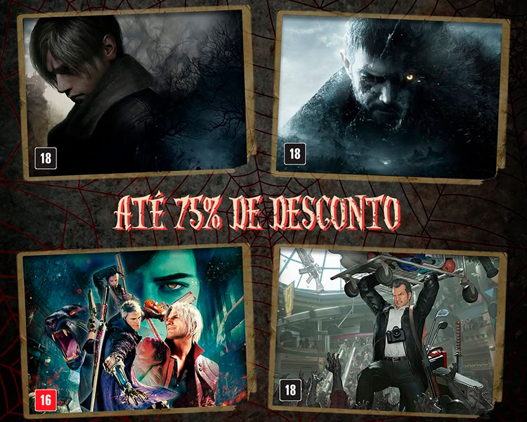 Resident Evil e outras séries de jogos da Capcom estão em promoção de Dia das Bruxas – ou halloween para os íntimos. Vale só para o Xbox no Brasil. Nem todos os títulos estão em oferta também, mas entre as opções há o remake de Resident Evil 4 e Dead Rising Deluxe Remaster, dois relativamente mais novos de franquias de destaque. Devil May Cry 5 é outro que vale o investimento quando com desconto.