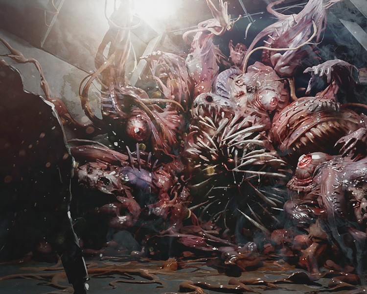 Em outra postagem, Resident Evil Wiki esclareceu que não seriam bem zumbis como os do t-vírus de Resident Evil 2, e sim pessoas se tornando coisas com seus tentáculos até evoluir para algo mais sem muita forma – uma “coisa” – como a transformação final de William Birkin.