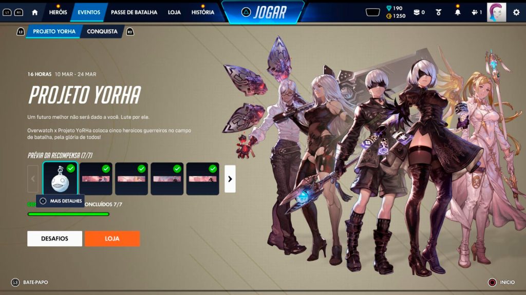 O evento esteve no ar de 10 a 23 de março, mas o legado de YoRHa permanece ecoando. Os campos de batalha continuam fervilhando com partidas emocionantes e novos eventos sazonais em constante rotação. Em Ovewatch a próxima grande jornada está sempre a um “play” de distância e o mundo sempre precisa de novos heróis.