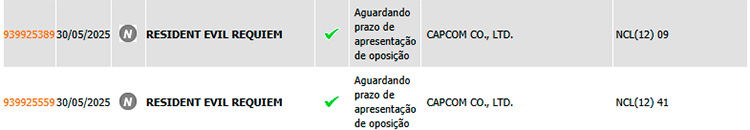 O processo relacionado a Requiem só começou a se movimentar com o pagamento de taxas em duas classes de registro em 9 de julho de 2025, o que explica porquê, antes da data, não parecia. Os pedidos estão em “prazo de apresentação de oposição”, com 60 dias a contar da publicação para alguém se manifestar contra – mas quem, em sã consciência, vai ser contra algo que não é dela, e sim da Capcom?.