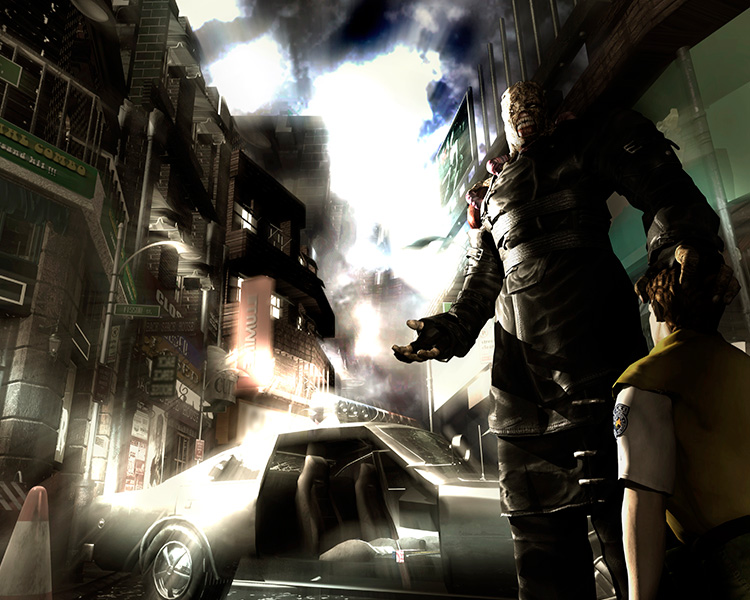 Nemesis é um produto da Umbrella que foi enviado à Raccoon City para destruir os S.T.A.R.S., testemunhas das atrocidades da corporação. No Japão, o clássico Resident Evil 3 ganhou o subtítulo “Last Escape”, que em português significa “Última Fuga”. Faz sentido ao envolver Jill Valentine e sua corrida contra o tempo pelas ruas da cidade mergulhada no caos.