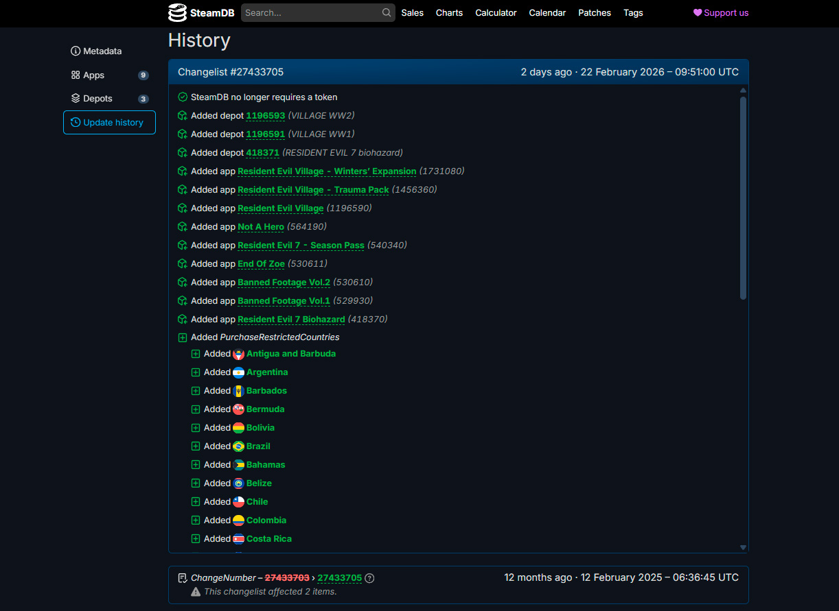 Vamos lá, no Steam, Resident Evil 7 recebeu atualizações e restrições específicas que atingem países da América Latina e algumas outras regiões no dia 22 de fevereiro. Todos os conteúdos de RE7, incluindo os adicionais (DLCs), foram afetados. Resident Evil Village também foi alterado. RE7 e Village conversam entre si no quesito personagens. Restrições de compras também foram adotadas. As alterações estão registradas no SteamDB.