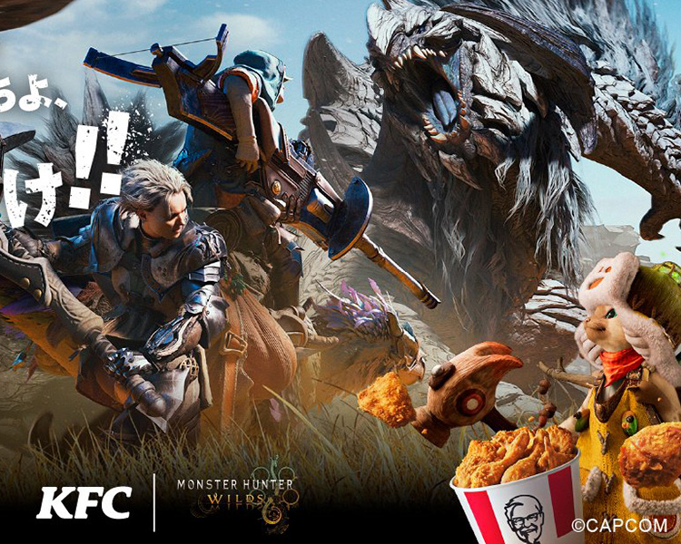 Depois da parceria que a Capcom fez com o McDonald’s para hamburgueres de Street Fighter, outra ação colaborativa foi iniciada no Japão envolvendo os restaurantes KFC com Monster Hunter Wilds. Pingentes com os gatinhos de Monster Hunter, Airou para os íntimos, vão compor alguns combos da rede.