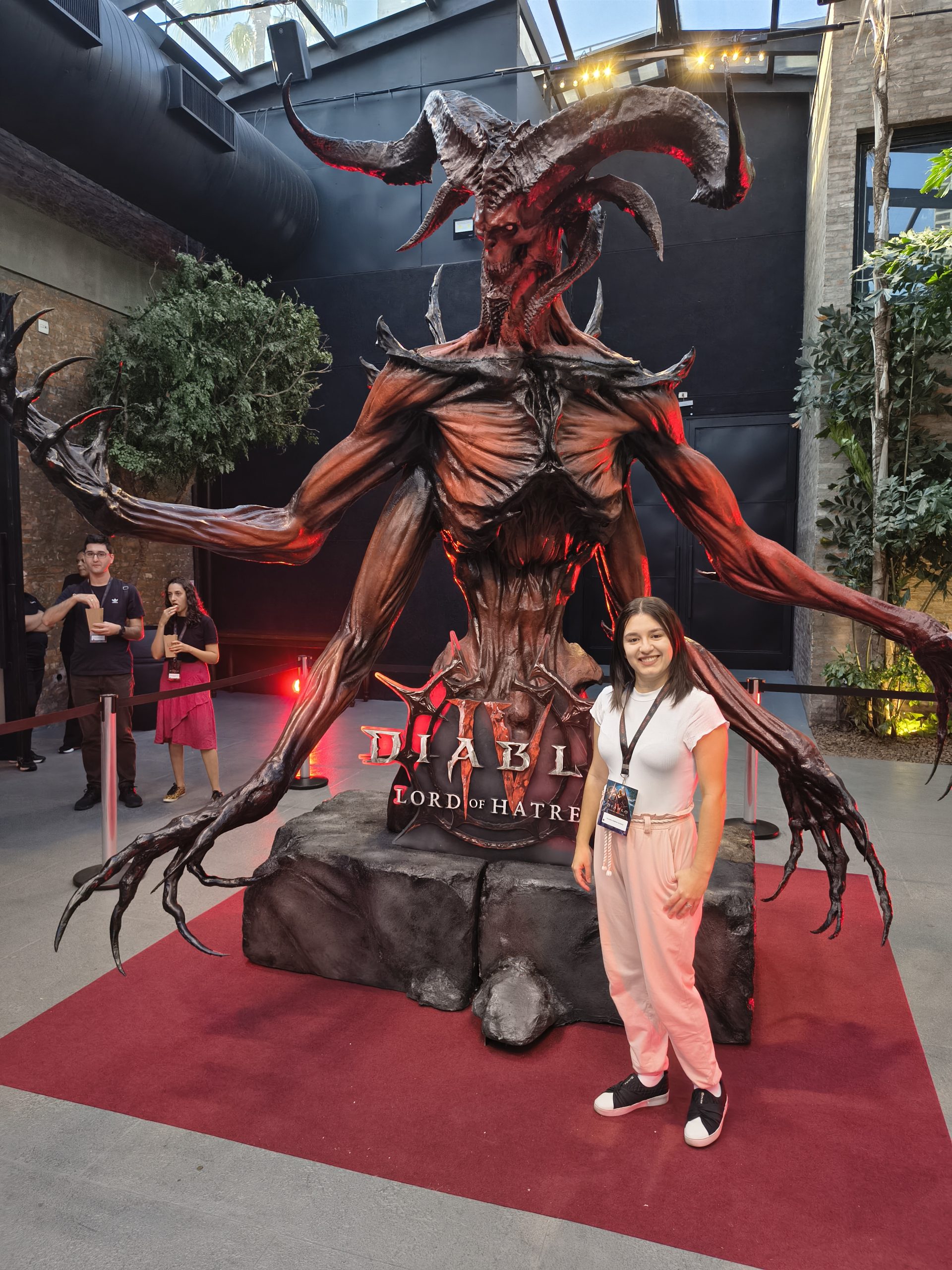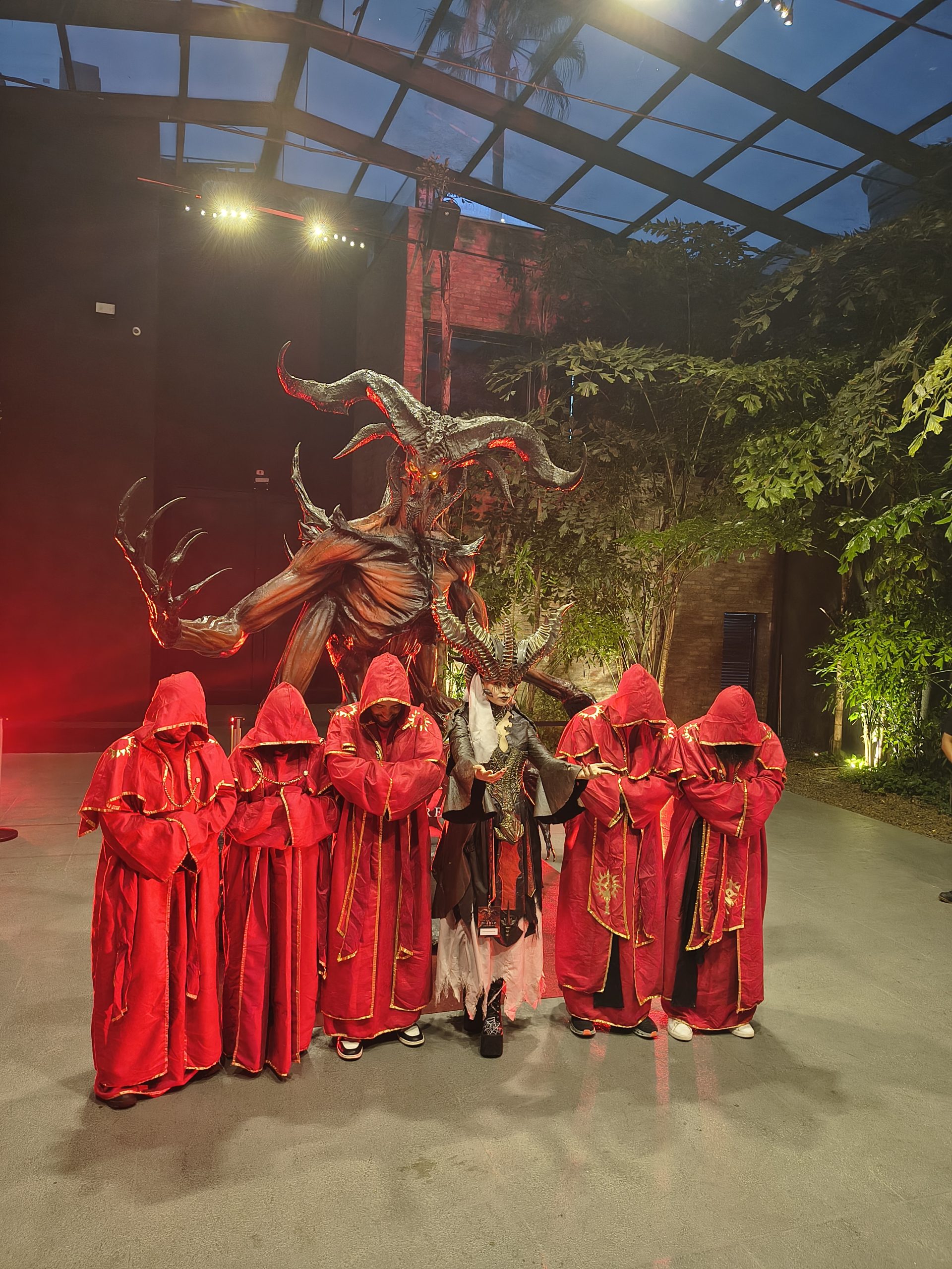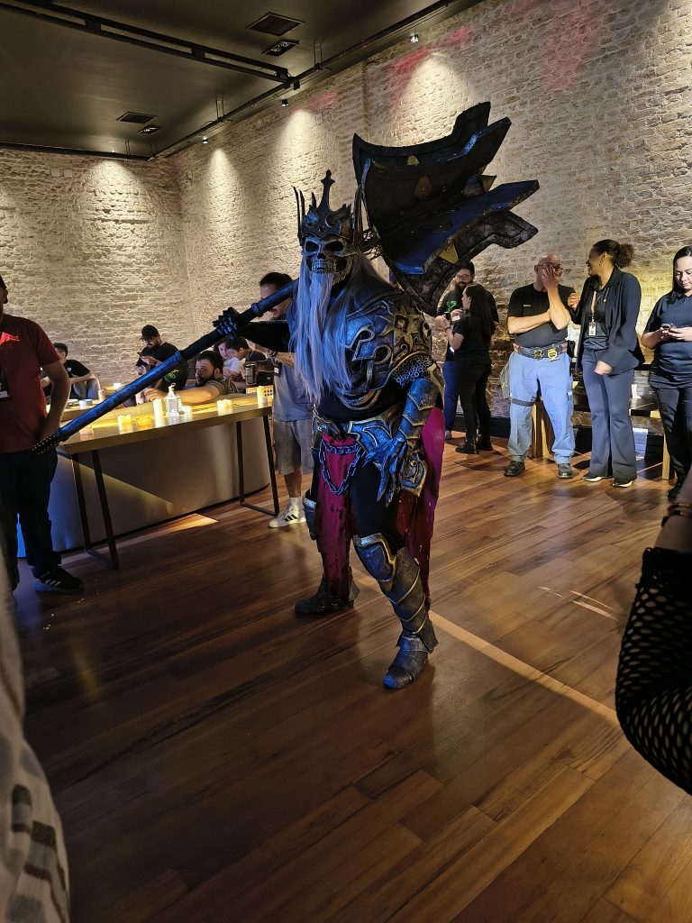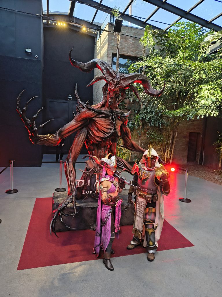Fora as atividades que tinham no local, como pesca e quebra-cabeças com brindes, estúdio de tatuagem e comes e bebes, o evento teve a presença de cosplayers, da equipe Blizzard no Brasil, equipe da Theogames e, claro, a presença de Rex Dickson, Associate Director e Game Design de Diablo IV. Consegui fazer uma perguntinha rápida para ele: