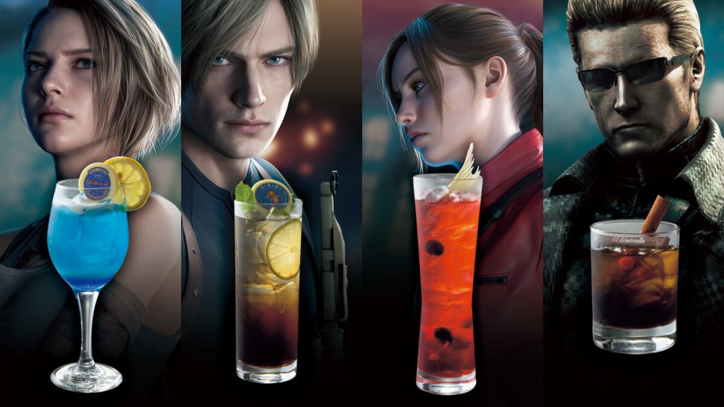 A página oficial do evento lista um menu especial em um restaurante da Universal Studios Japan. O cardápio envolve bebidas temáticas de personagens, um prato executivo com um bife que lembra a cena de Chris de Resident Evil 6 e porta copos.