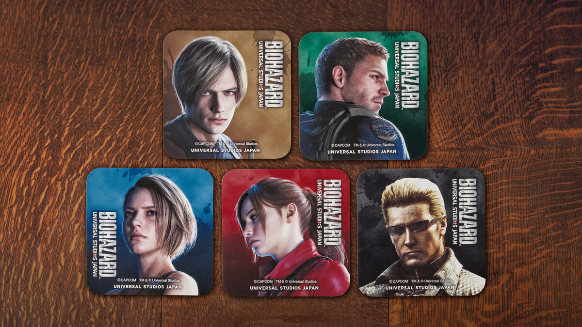 A página oficial do evento lista um menu especial em um restaurante da Universal Studios Japan. O cardápio envolve bebidas temáticas de personagens, um prato executivo com um bife que lembra a cena de Chris de Resident Evil 6 e porta copos.