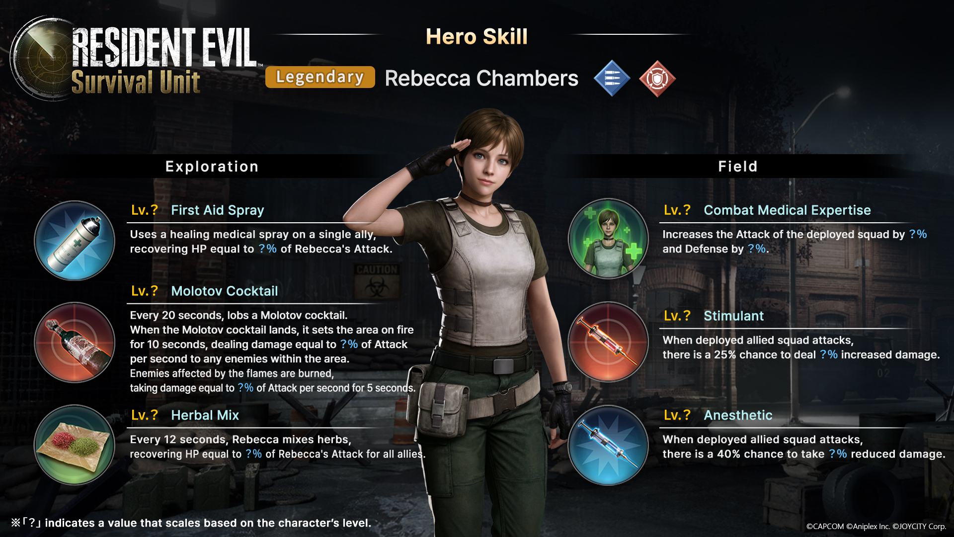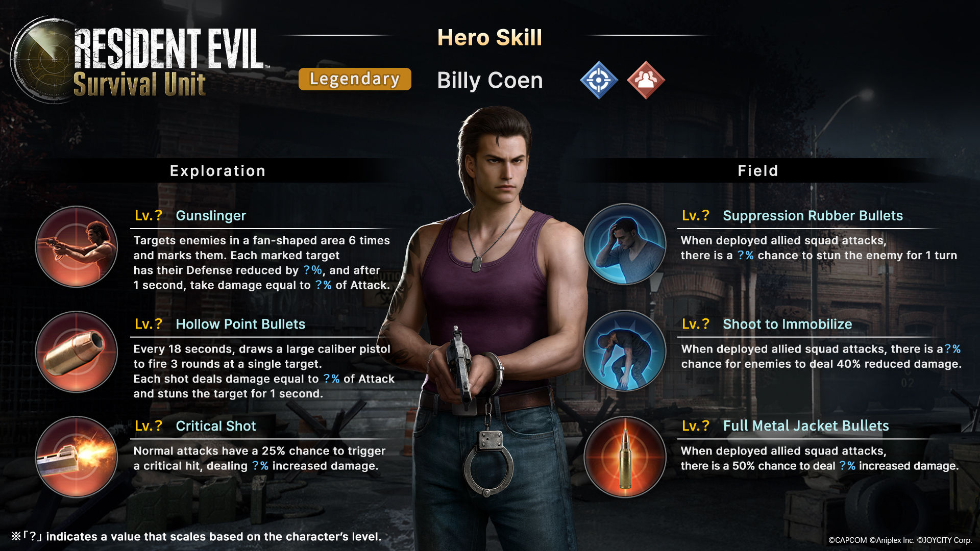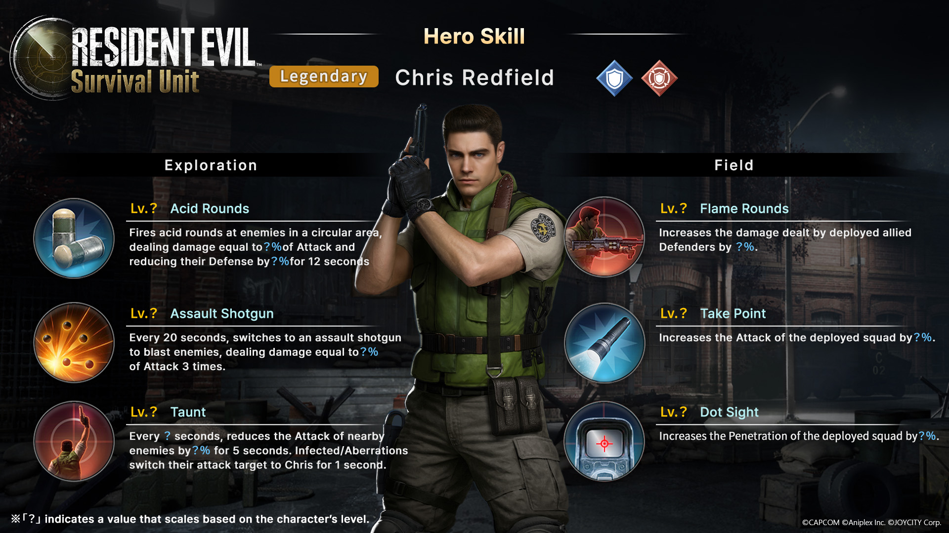 Três novos heróis foram anunciados para Resident Evil Survival Unit e vão chegar ao jogo mobile. Depois de ter sido encontrado em arquivos do jogo pelo REVIL, Chris Redfield é um dos que foram confirmados e vai se juntar à luta como um personagem lendário. Os protagonistas de Resident Evil 0, Rebecca Chambers e Billy Coen, também se unirão ao combate com o mesmo status lendário.