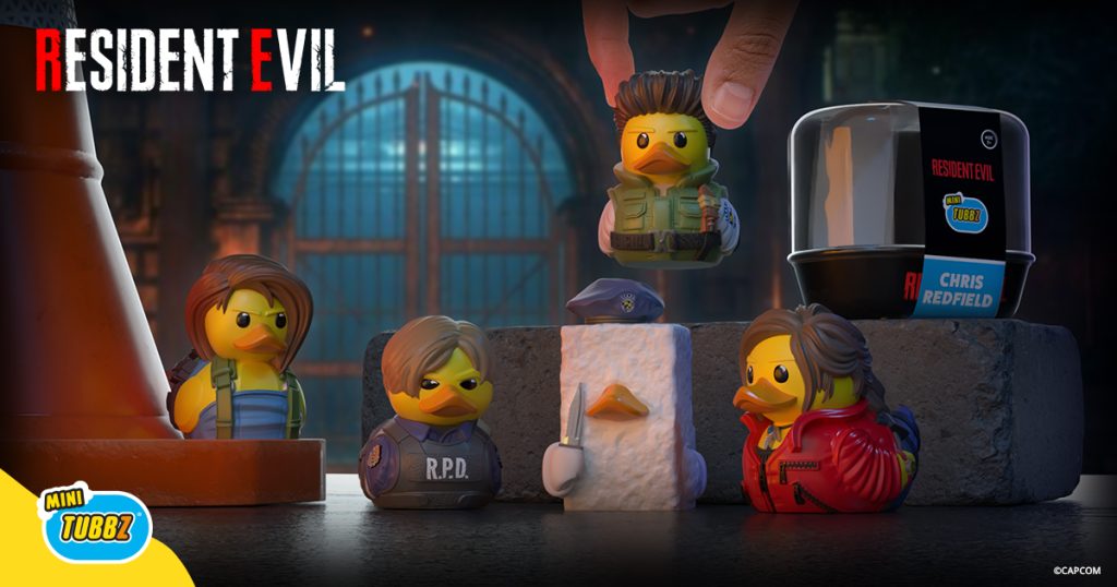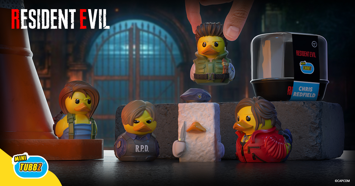 Patos em versão mini de Resident Evil são os novos produtos licenciados pela Capcom que estão sendo comercializados. Leon S. Kennedy, Claire Redfield, Chris Redfield, Jill Valentine e Tofu fazem parte das Mini Editions TUBBZ, colecionáveis que já possuíam versões maiores em caixa. A novidade é a redução no tamanho para miniaturas, com itens de cerca de 5 centímetros de altura.
