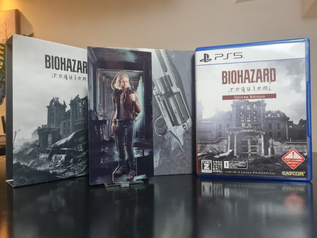 Resident Evil Requiem tem uma edição de colecionador lançada no Japão. A Biohazard Requiem Collector’s Edition é limitada e possui uma caixa especial, além de steelbook (embalagem de metal) com o desenho da arma Requiem, arte de jornal e da delegacia de Raccoon. O produto também tem como item um acrílico de Grace Ashcroft.