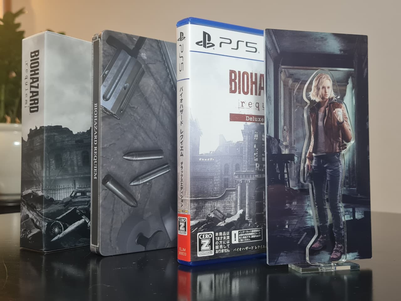 Resident Evil Requiem tem uma edição de colecionador lançada no Japão. A Biohazard Requiem Collector’s Edition é limitada e possui uma caixa especial, além de steelbook (embalagem de metal) com o desenho da arma Requiem, arte de jornal e da delegacia de Raccoon. O produto também tem como item um acrílico de Grace Ashcroft.