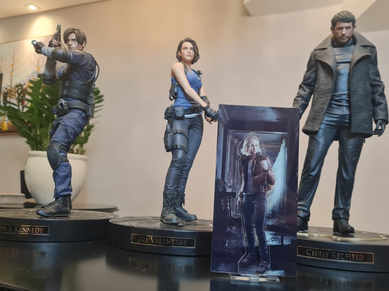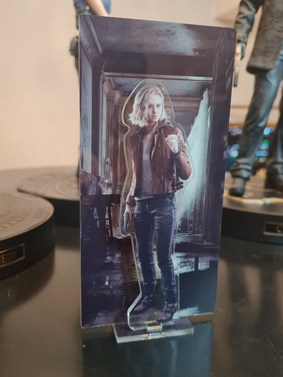 No vídeo, Fred compara o acrílico de Grace com outras versões especiais, incluindo bonecos de Leon S. Kennedy (Resident Evil 2), Jill Valentine (Resident Evil 3) e Chris Redfield (Resident Evil Village).